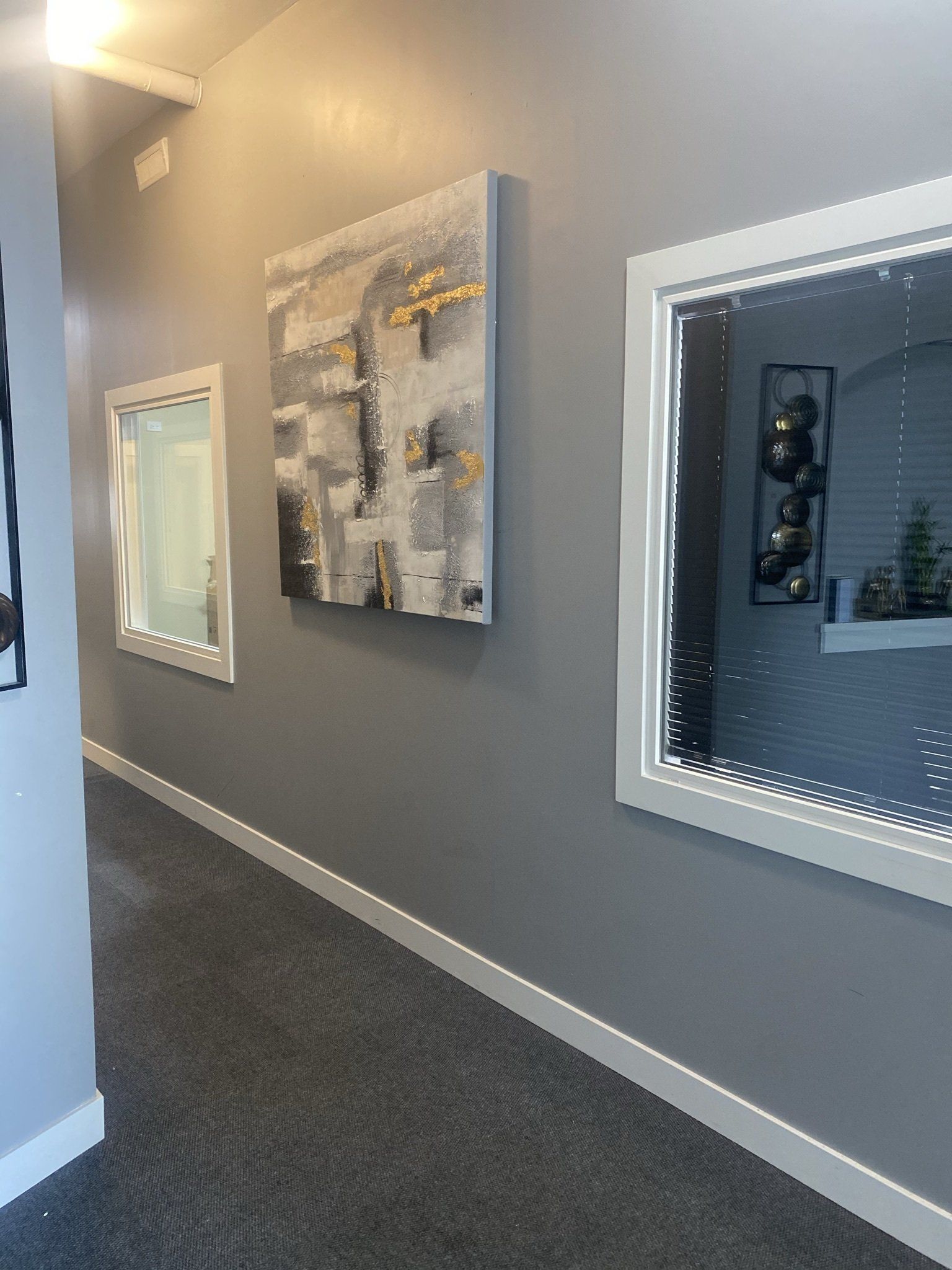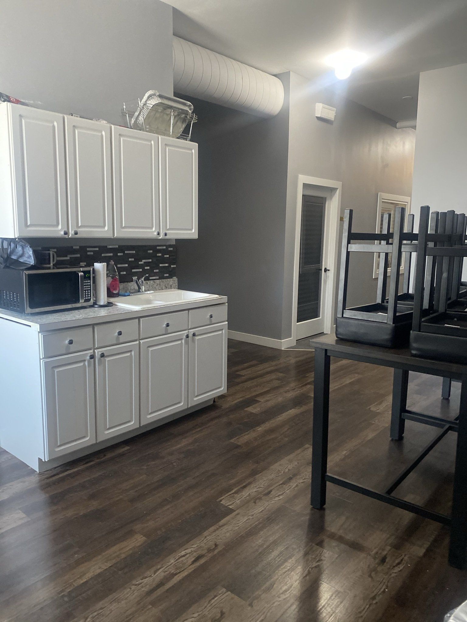 As an executive suite owner, you will be able to run your business from the comforts of our state-of-the-art facility. All of our suites come with an upgraded glass entry door, newly installed wood flooring, private plumbing, multiple power outlets, public restroom access and a communal kitchen/seating area.